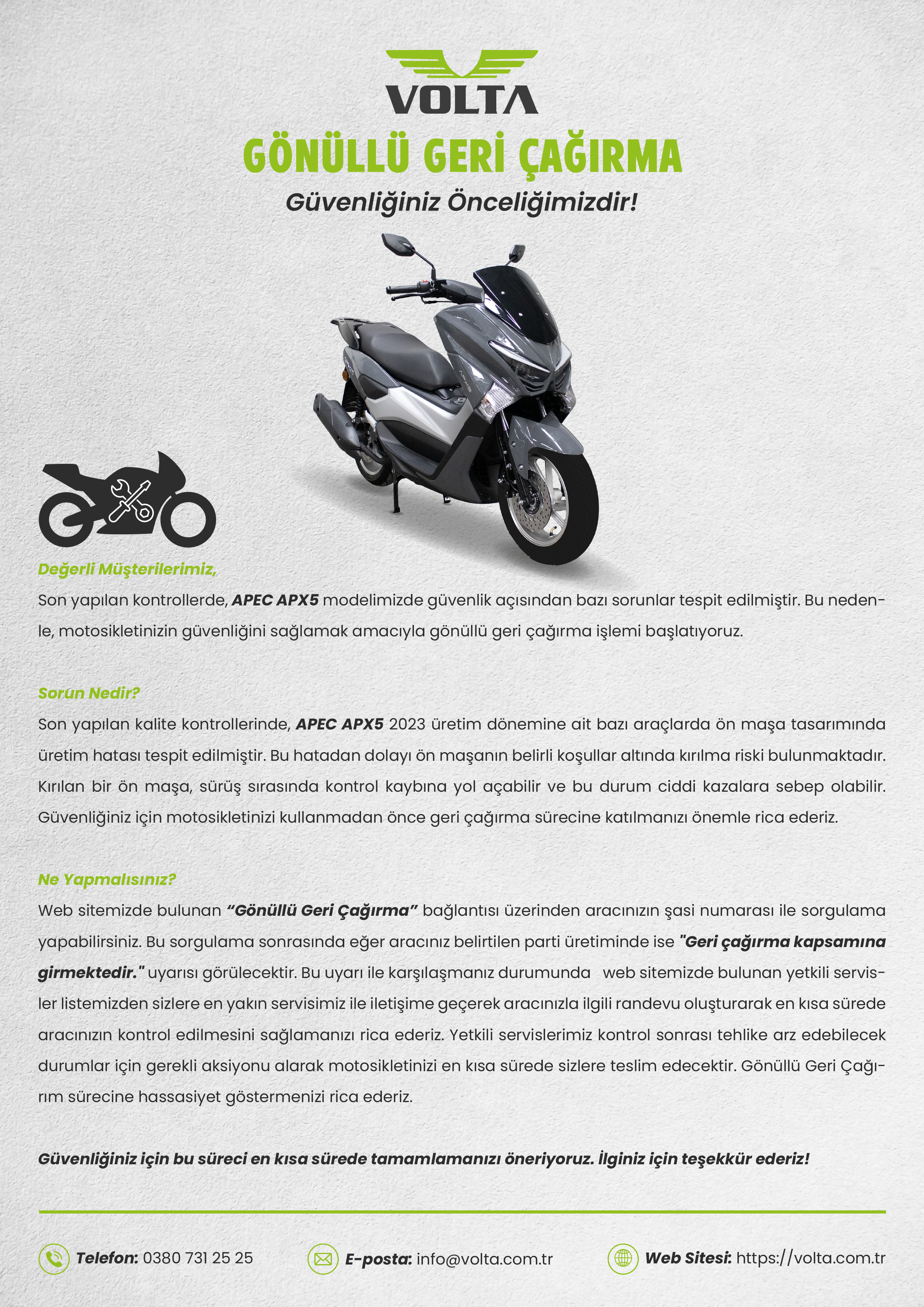 Yapacağınız işlemin doğru şekilde tamamlanabilmesi için, kişisel bilgilerinizi eksiksiz ve gerçeğe uygun biçimde girmeniz gerekmektedir. Eksik ya da hatalı bilgi girişi durumunda gönüllü geri çağırma kapsamında planlanan işlemler aracınız için uygulanmasını engelleyebilir.